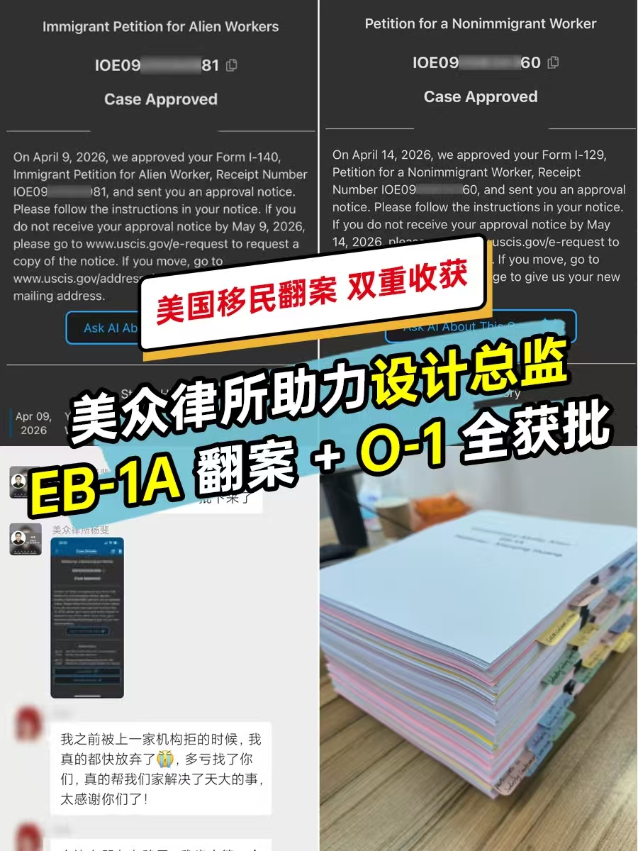 美国移民一次翻案,双重收获美众律所助力设计总监EB-1A翻案+O-1全获批